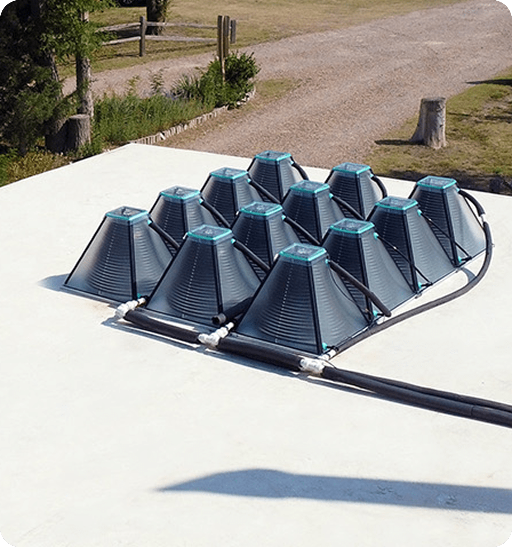 "في قلب كل نظام من سخانات المياه الشمسية من سولارِس كِت يوجد مجمّعنا الشمسي HelioFlow™ — وهو تصميم منشوري حاصل على براءة اختراع يلتقط الطاقة الشمسية وينقلها إلى المياه بكفاءة وأمان. تتحرك المياه عبر ملفّ الامتصاص داخل المجمّع الشمسي، حيث يتم تسخينها بواسطة ضوء الشمس. بعدها يتدفّق الماء الساخن إلى خزان معزول لتخزين المياه الساخنة، مما يقلّل من استهلاك الكهرباء والانبعاثات الكربونية."